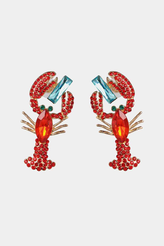 Ethnic Lobster Shape Glass Stone Dangle Earrings